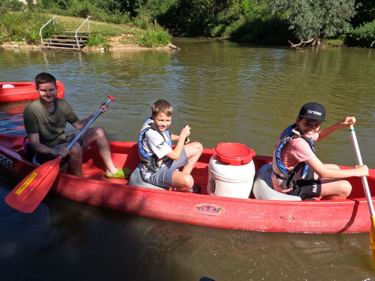 Anfang Juli ging es für die Minis gleich sportlich weiter bei unserem diesjährigen Miniausflug. An diesem Tag sind wir gemeinsam mit 30 Ministrant:innen auf der Altmühl von Solnhofen nach Dollnstein Kanu gefahren. In 9 Kanus aufgeteilt ging es bei traumhaftem Wetter die 13km vorbei an den Zwölf-Apostel-Felsen und durch den schönsten Teil des Tals. Nach circa 3h fleißigem Paddeln wartete Rochus mit warmen Leberkassemmeln an einem Campingplatz auf uns und begrüßte uns mit kalten Getränken. Gut gestärkt erreichten wir nach kurzer Zeit den sportlichen Höhepunkt der Tour, die beiden idyllischen Bootsrutschen, die wir mit Schwung passierten. Ausgepowert und erschöpft trafen wir abends mit dem Bus wieder im Sportpark ein und hatten insgesamt einen tollen Tag in der Mini-Gemeinschaft.
