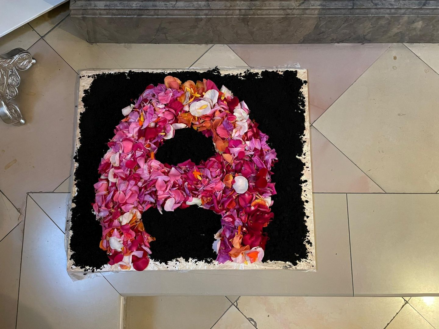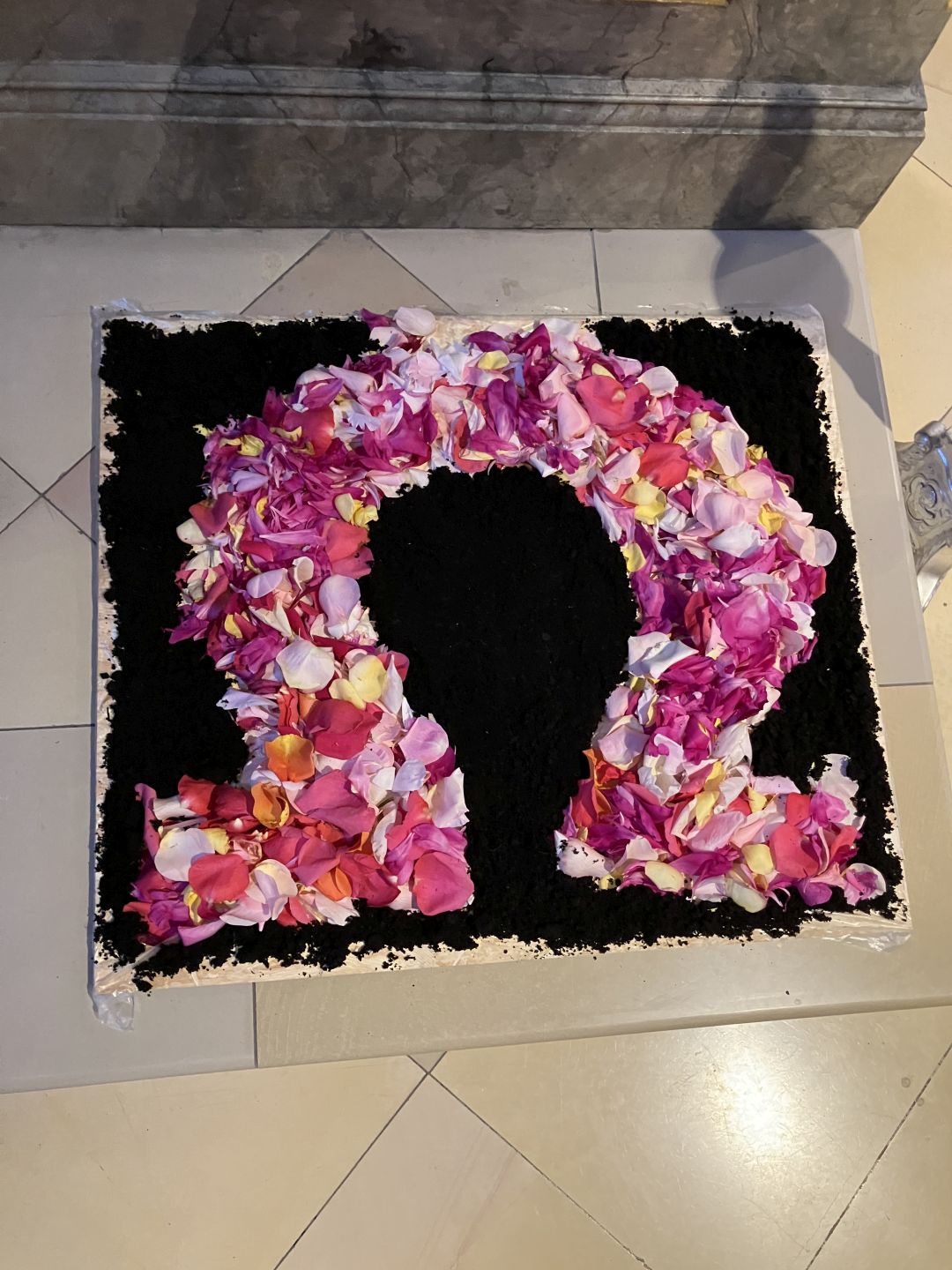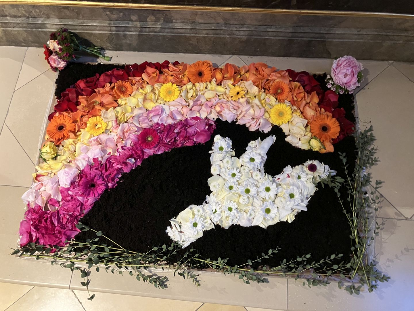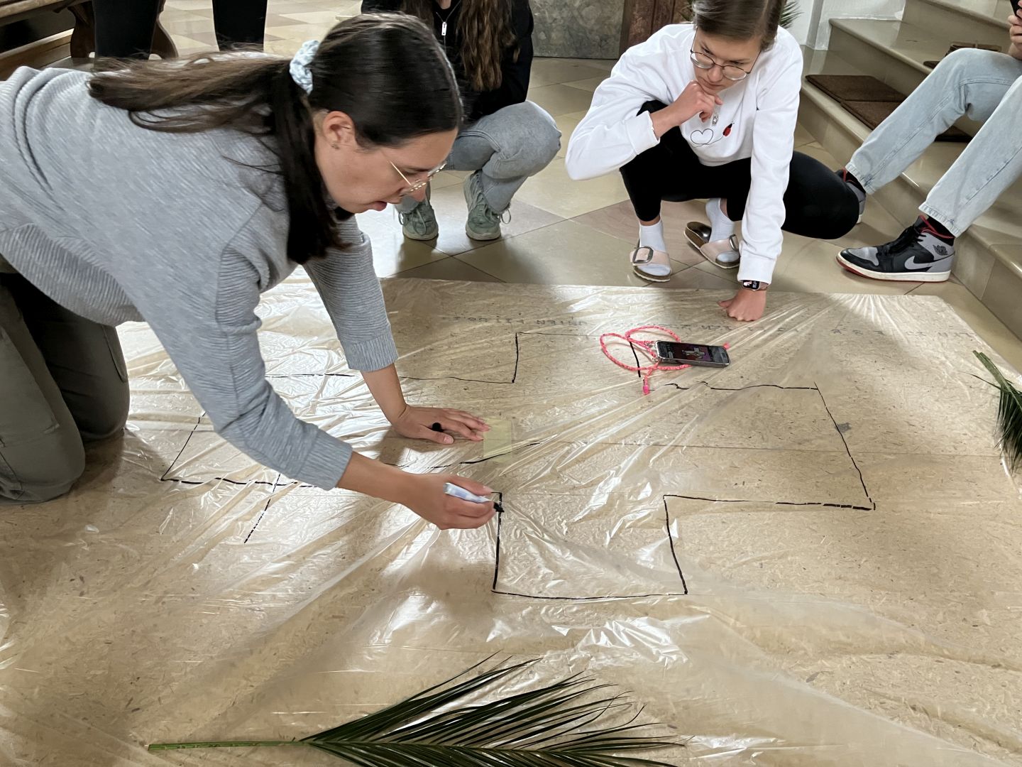 Für den Festgottesdienst an Fronleichnam haben wir am Vorabend drei Blumenteppiche gelegt.